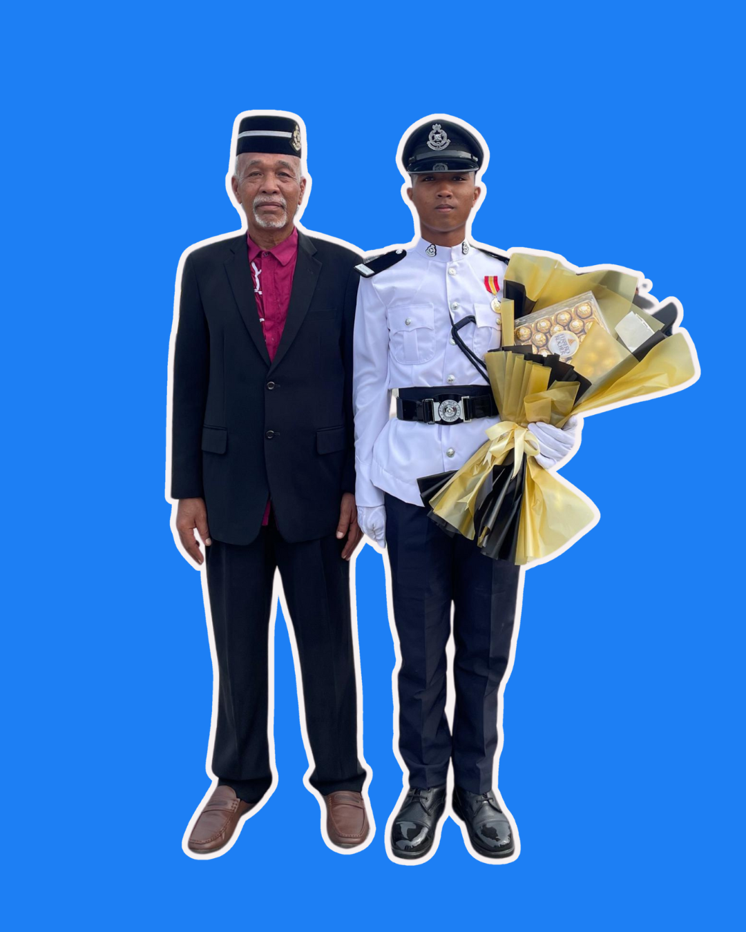 Muhamad Puzi bersama cucunya, Muhammad Azrie yang turut mengikut langkahnya menjadi seorang anggota polis.